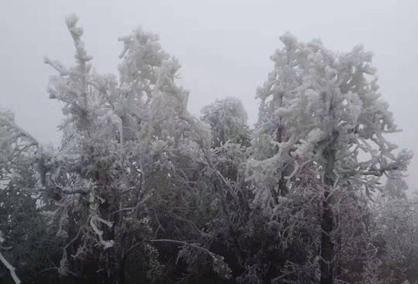 娄星在线网讯 近期,由于气温低、持续降水,双江乡洪家山森林公园“冰花开满山”,八方游客纷至沓来,欣赏美丽的雾凇。
