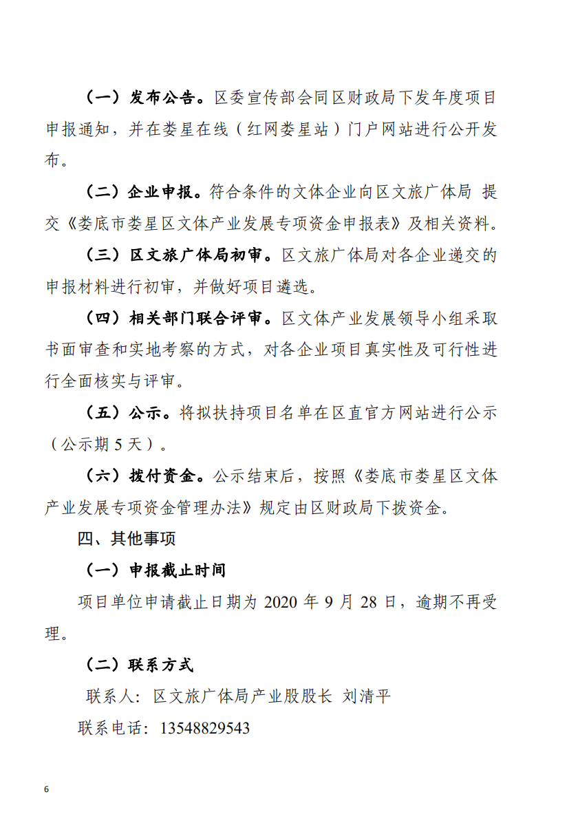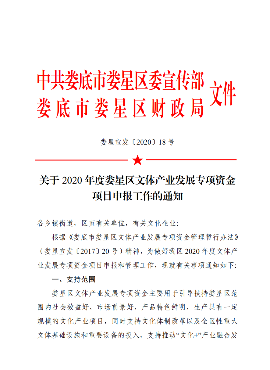 关于2020年度娄星区文体产业发展专项资金项目申报工作的通知