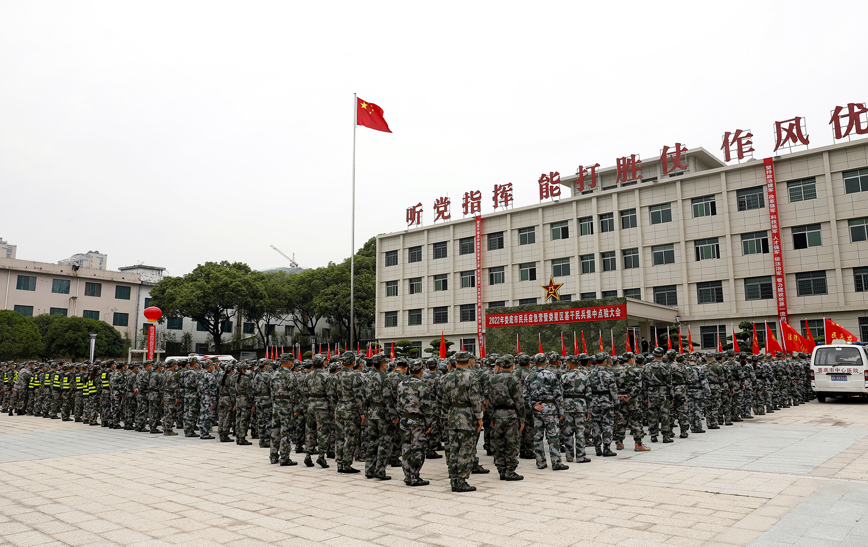 在铿锵有力的《中国人民解放军军歌》声中,集中点验大会拉开序幕,市、区两级1000余名基干民兵以饱满热情、昂扬斗志、争先劲头接受点验。