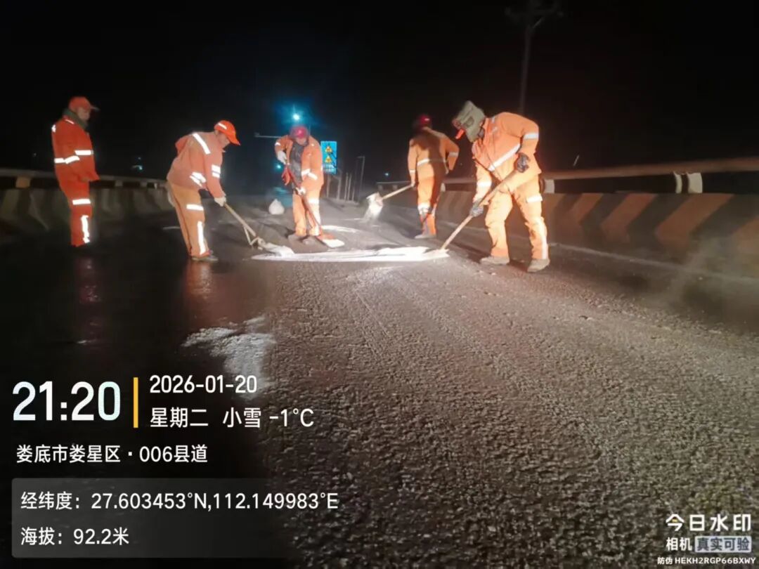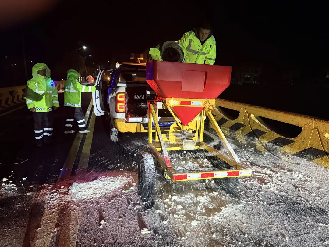 1月20日晚,区农村公路建设养护中心联合交通、交警及各乡镇街道,构建全方位低温雨雪应急保障体系。行动累计出动12支应急队伍,调配应急抢险车、融雪撒布机等设备,向桥梁、长下坡、危险路段投放融雪物资150吨,防范路面结冰风险。同步设置警示标牌523块,覆盖县道桥梁24座、乡村道桥梁145座,重点路段点位185处,全面保障农村公路通行安全。