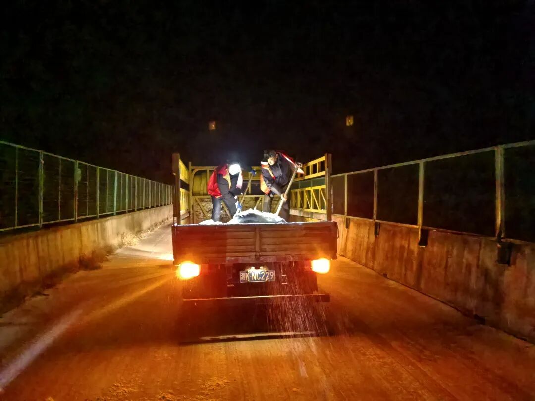 全区各乡镇街道聚焦桥梁隧道、主要干道、长下坡等易结冰、易拥堵重点路段,开展全方位隐患排查整治,提前备足除雪工具,工业盐等应急物资,组织人员提前向道路抛撒工业盐,预防道路结冰。