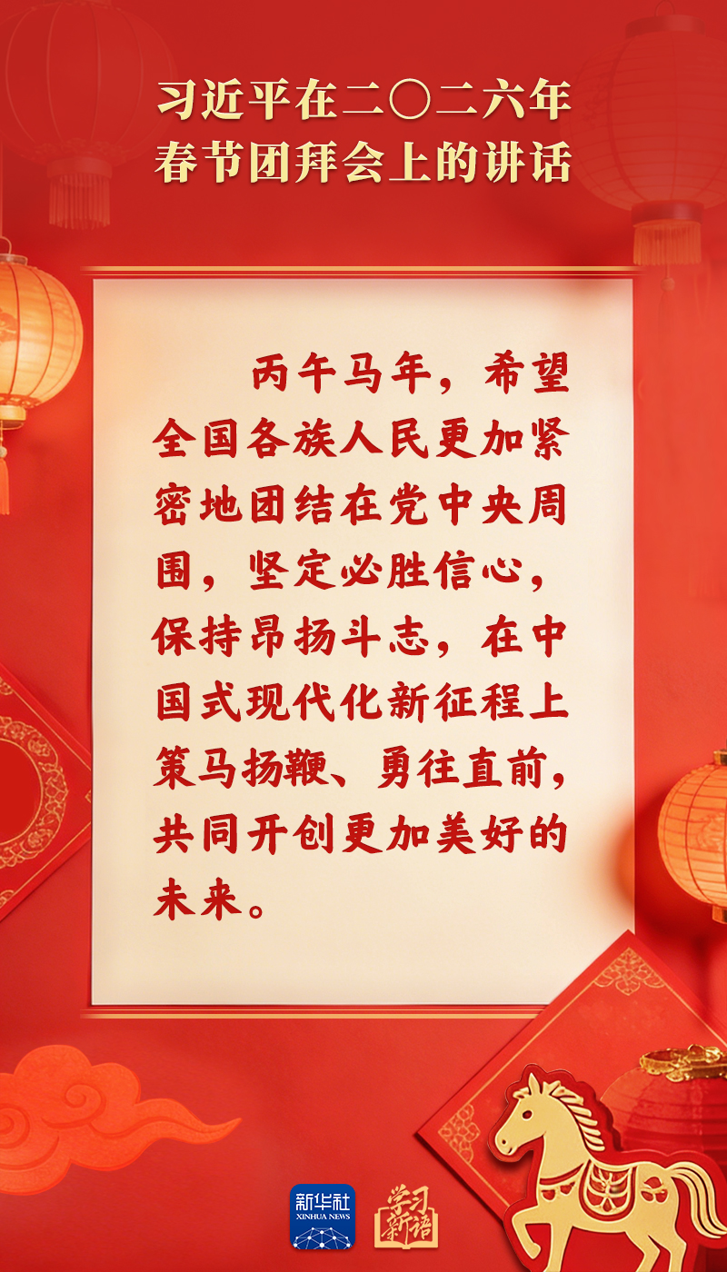 原标题:学习新语|策马扬鞭、勇往直前!2026年春节团拜会总书记讲话金句