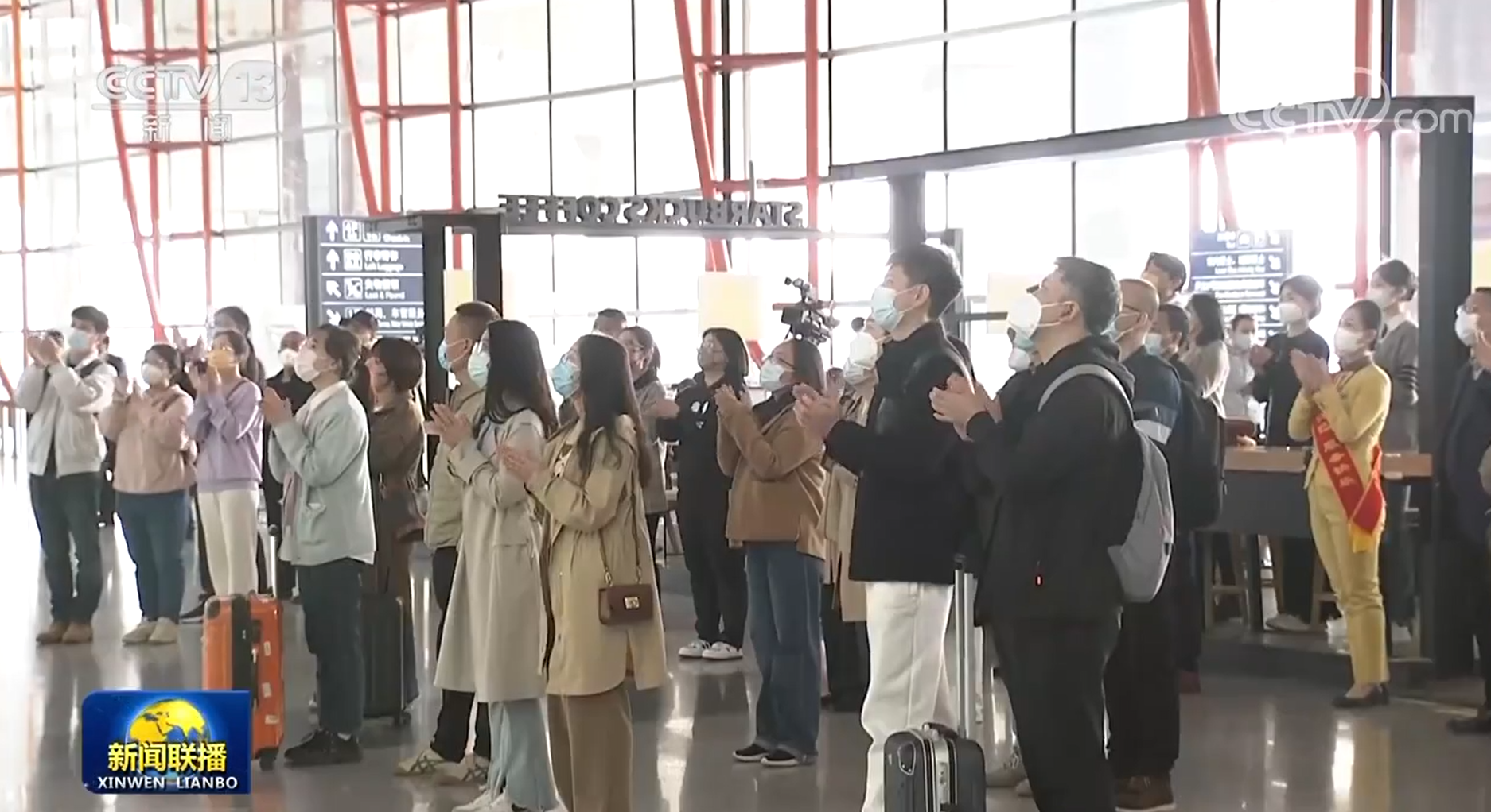 今天,在首都机场T3航站楼,大会的直播吸引了许多人观看,习近平主席当选的消息让现场响起热烈掌声。