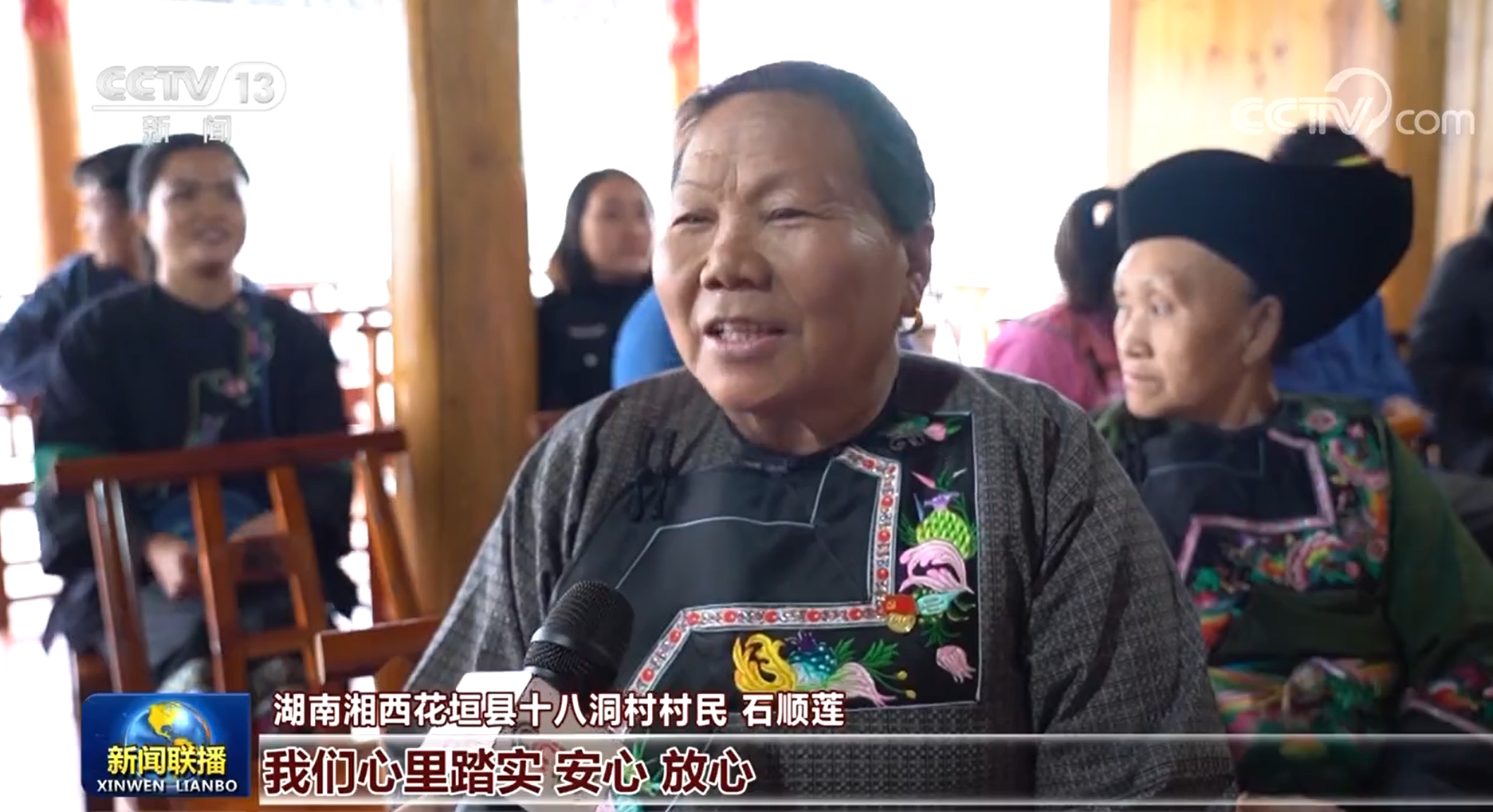 激动人心的消息也传到山村、边寨。在陕西梁家河、河北骆驼湾,阔步走在小康路上的乡亲们听到了习主席当选的消息,倍受鼓舞;今天,湖南湘西十八洞村春意盎然,苗寨里爆发出持久热烈的掌声;四川大凉山腹地的昭觉县三河村里,彝族群众们聚到村委会广场,共同见证历史时刻。