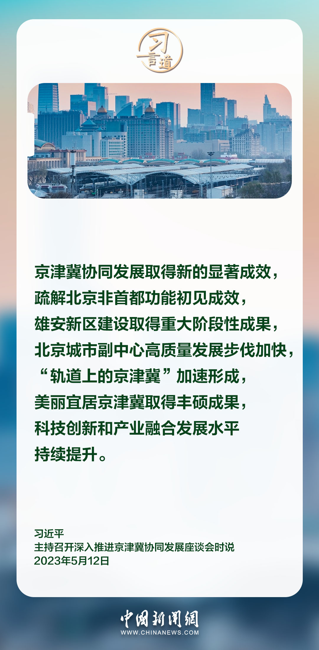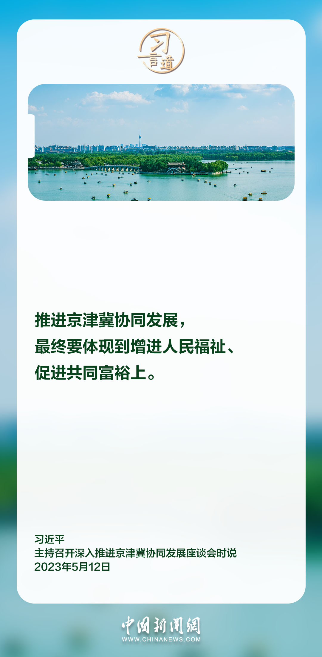 —分享— 京津冀,我国经济最具活力、开放程度最高、创新能力最强的地区之一。习近平总书记在不同场合多次就京津冀协同发展作出重要指示,强调推进京津冀协同发展,最终要体现到增进人民福祉、促进共同富裕上。 来源:中国新闻网 编辑:余苏霓